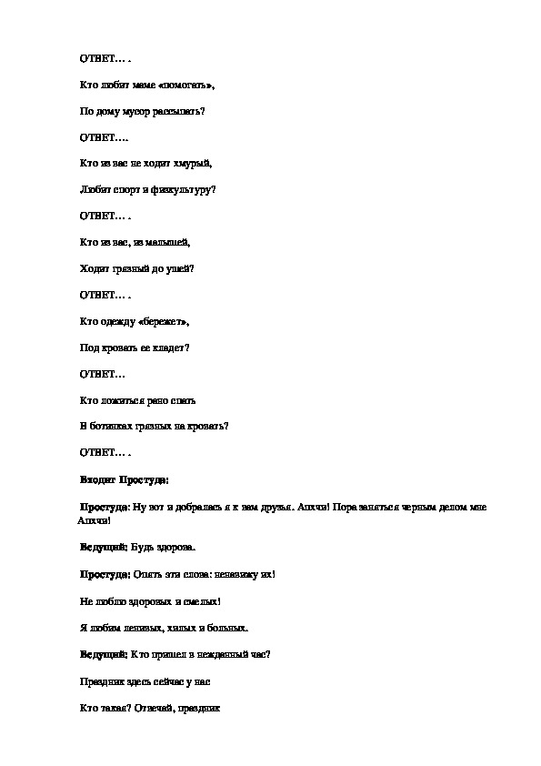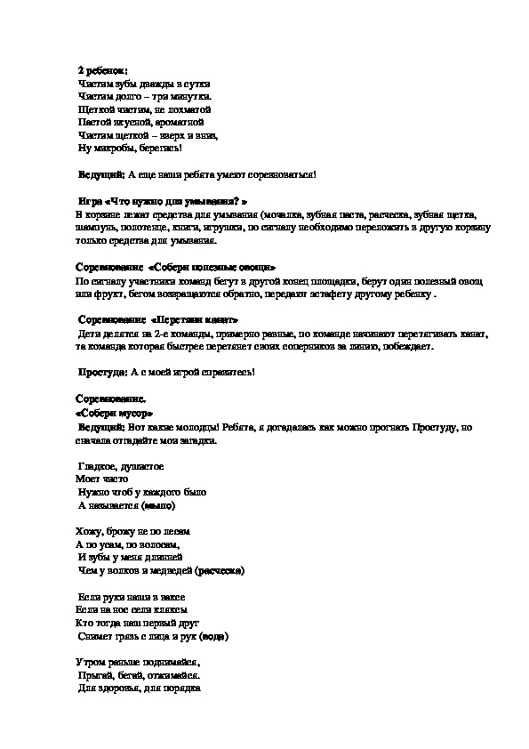 Ведущий: Наши ребята следят за своим здоровьем, за своей чистотой, никогда не болеют,
