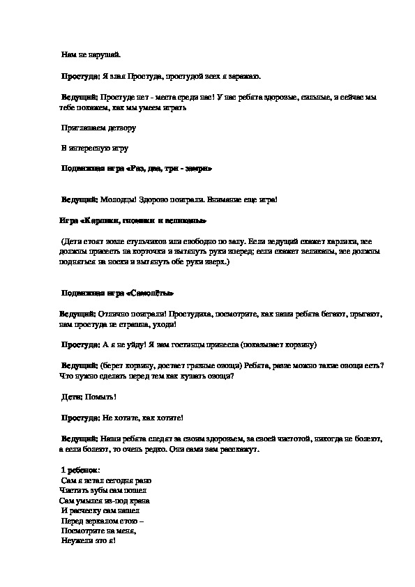 Ведущий: Простуде нет места среди нас! У нас ребята здоровые, сильные, и сейчас мы