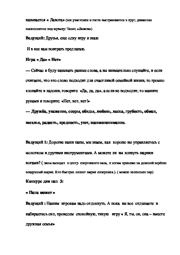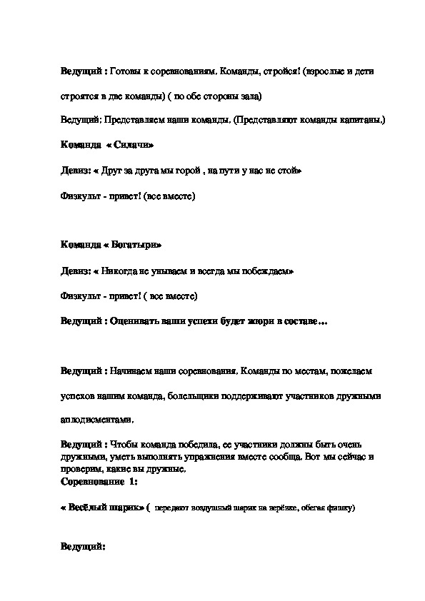 Ведущий 1: Сегодня на ваших глазах разыграются семейные соревнования