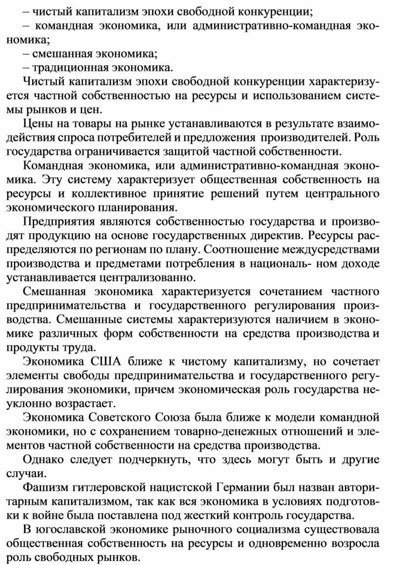 Чистый капитализм эпохи свободной конкуренции характеризу- ется частной собственностью на ресурсы и использованием систе- мы рынков и цен.