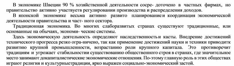 В экономике Швеции 90 % хозяйственной деятельности сосре- доточено в частных фирмах, но правительство активно участвует в регулировании производства и распределения доходов.