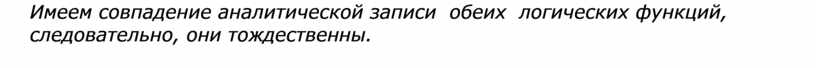 Имеем совпадение аналитической записи обеих логических функций, следовательно, они тождественны.
