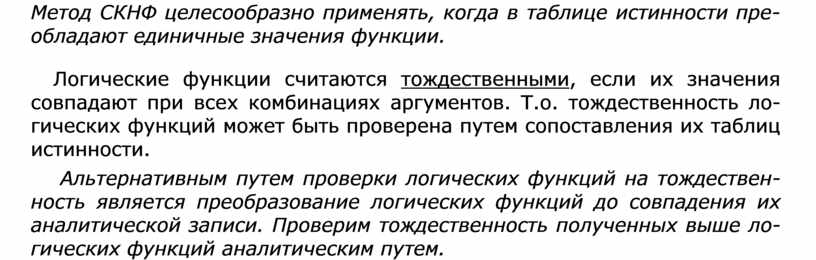 Метод СДНФ целесообразно применять, когда в таблице истинности пре- обладают нулевые значения функции.