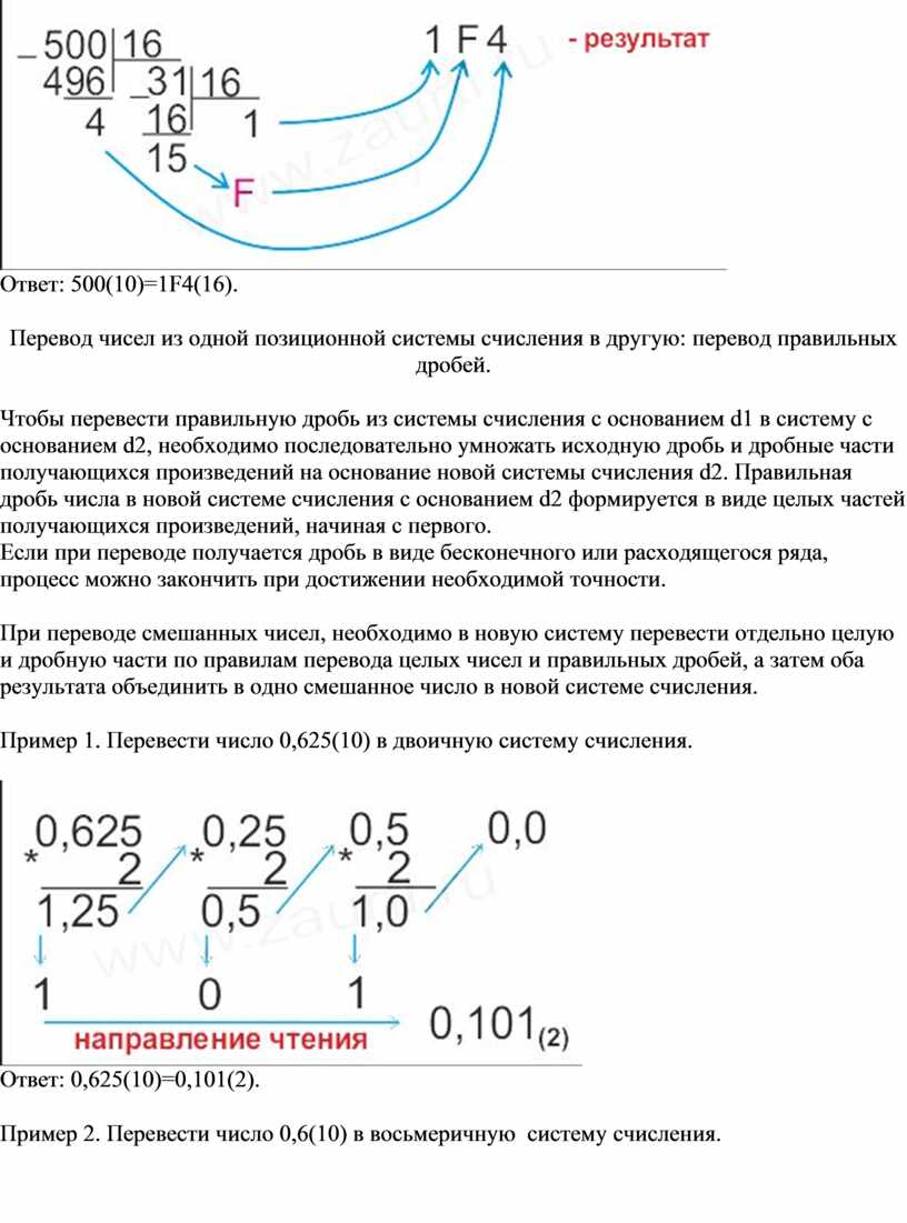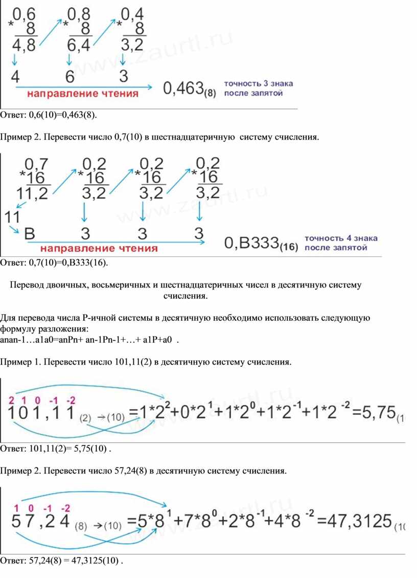 Пеpевод чисел из одной позиционной системы счисления в дpугую: пеpевод пpавильных дpобей.