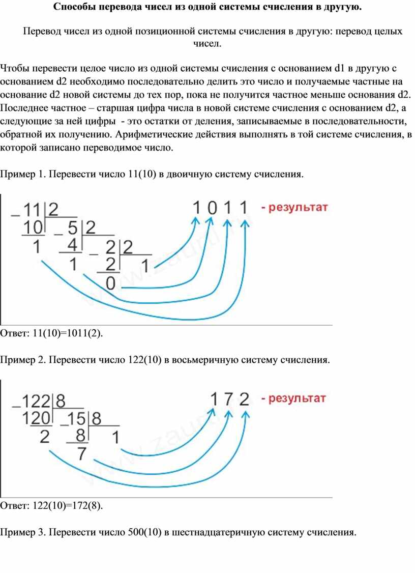 Пеpевод чисел из одной позиционной системы счисления в дpугую: пеpевод целых чисел.