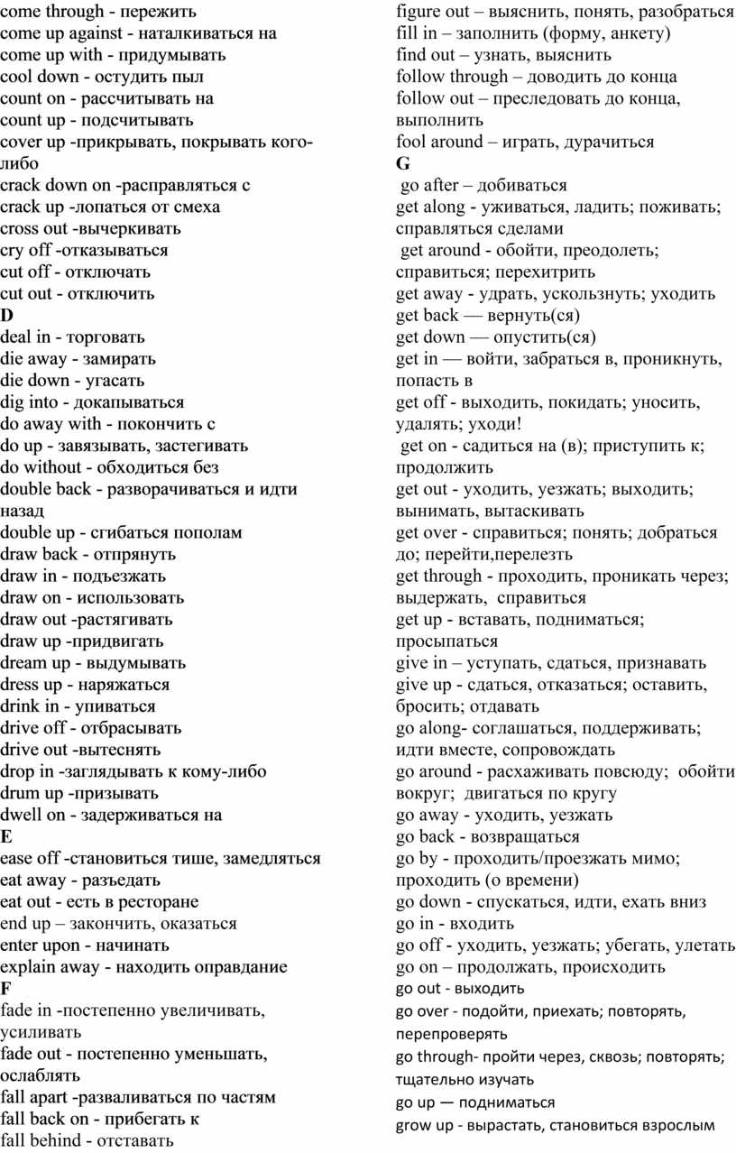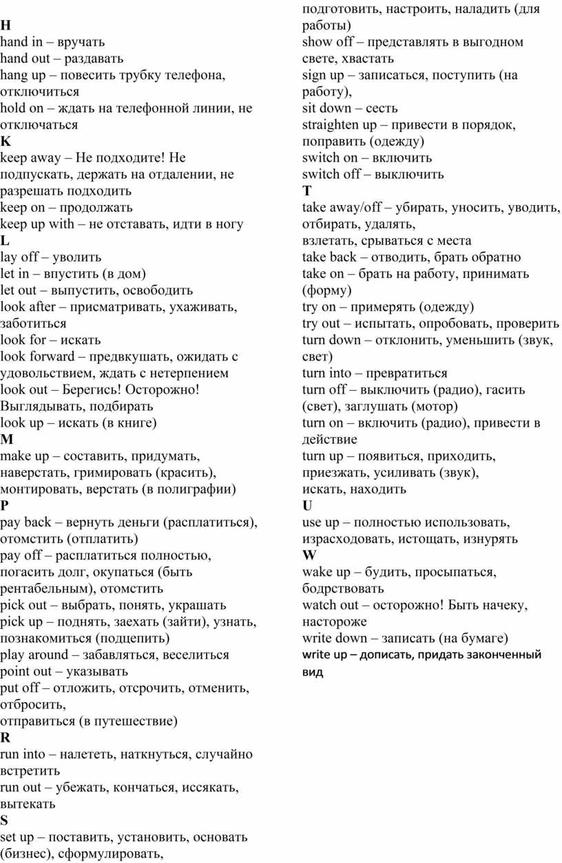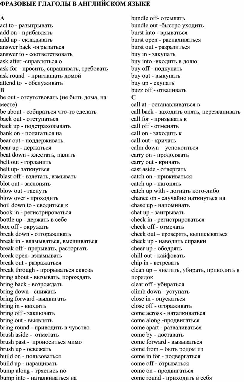 ФРАЗОВЫЕ ГЛАГОЛЫ В АНГЛИЙСКОМ ЯЗЫКЕ