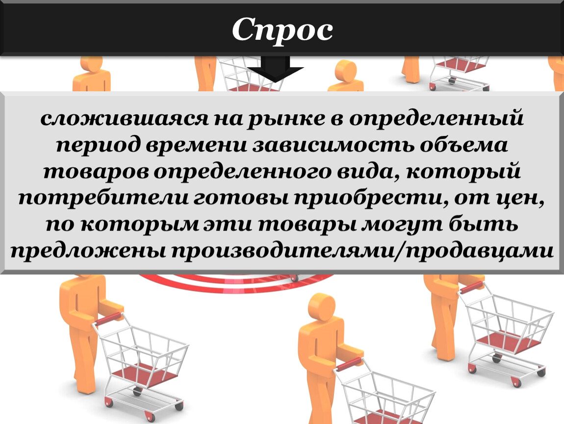 сложившаяся на рынке в определенный период времени зависимость объема товаров определенного вида, который потребители готовы приобрести, от цен, по которым эти товары могут быть предложены производителями/продавцами