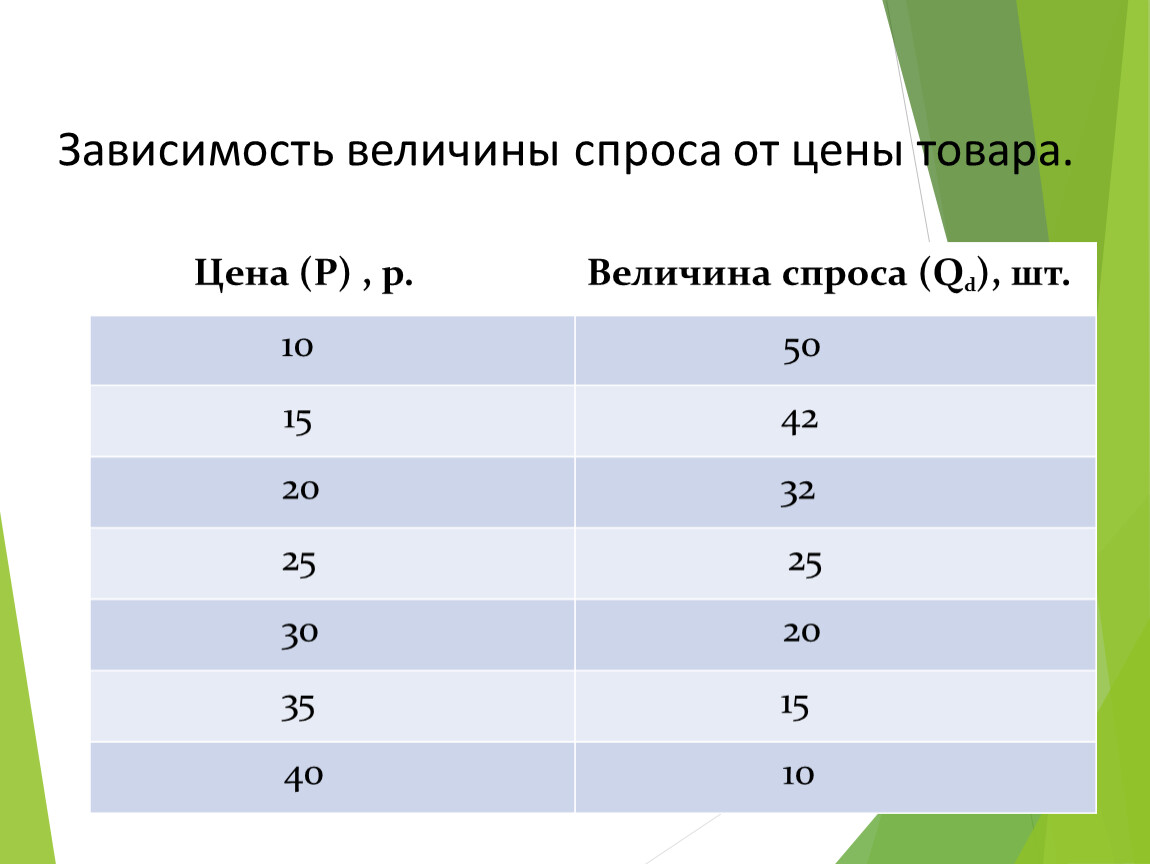 Зависимость величины спроса от цены товара.