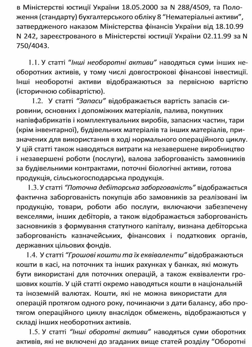 1.6. У статті “Інші оборотні активи” наводяться суми оборотних активів, які не включені до згаданих вище статей розділу “Оборотні активи”, зокрема, поточні фінансові інвестиції.