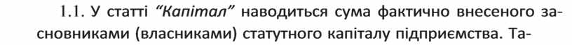 1.7. У статті “Капітал” наводиться сума фактично внесеного за- сновниками (власниками) статутного капіталу підприємства. Та-