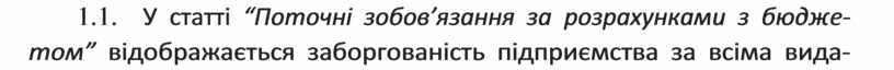 1.13. У статті “Поточні зобов’язання за розрахунками з бюдже- том” відображається заборгованість підприємства за всіма вида-