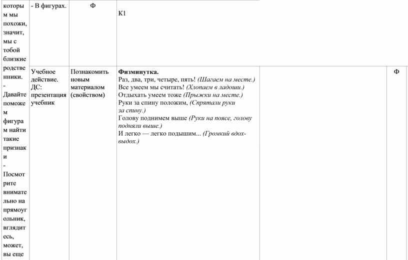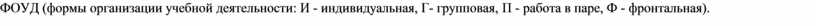 ФОУД (формы организации учебной деятельности: И - индивидуальная, Г- групповая, П - работа в паре, Ф - фронтальная).
