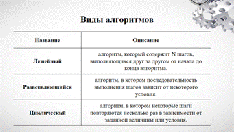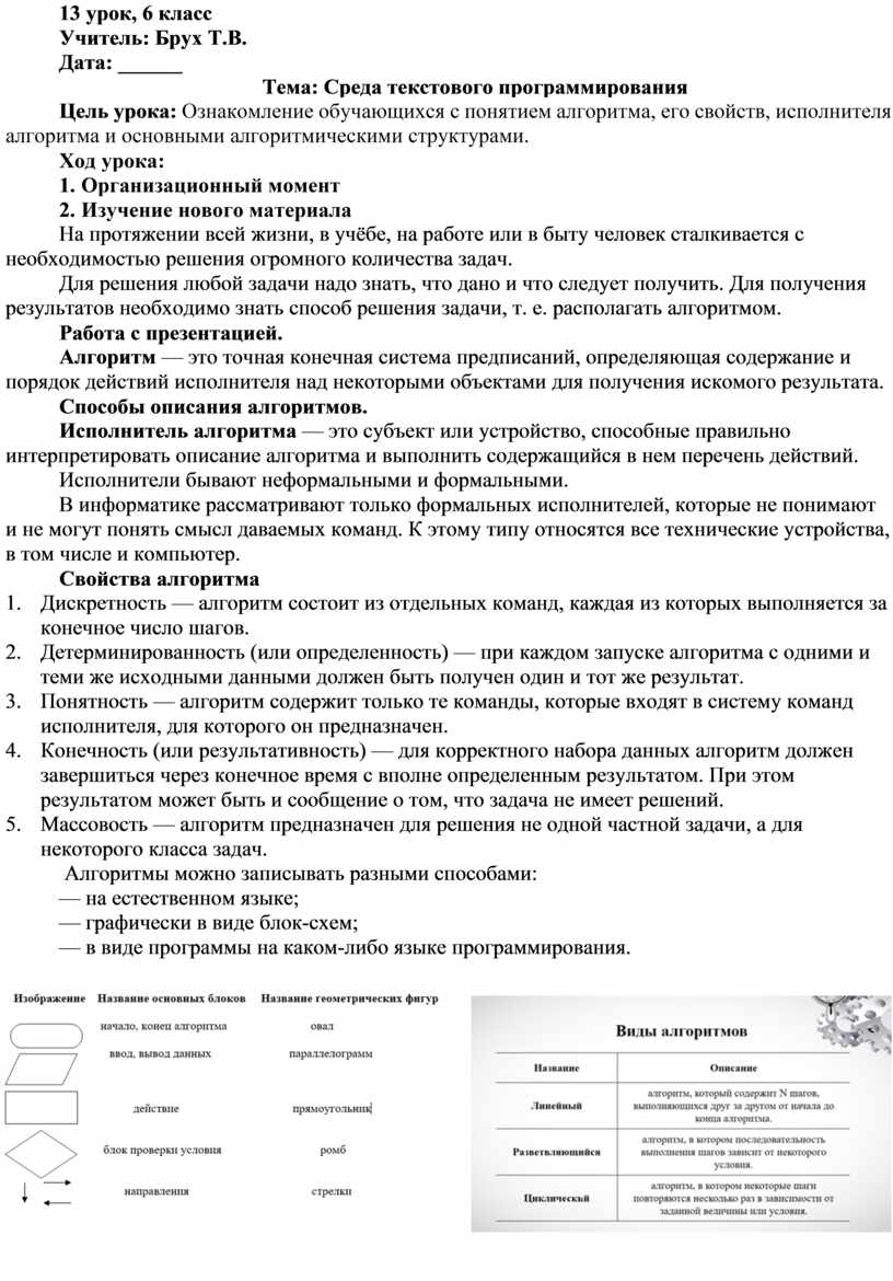 Цель урока: Ознакомление обучающихся с понятием алгоритма, его свойств, исполнителя алгоритма и основными алгоритмическими структурами.