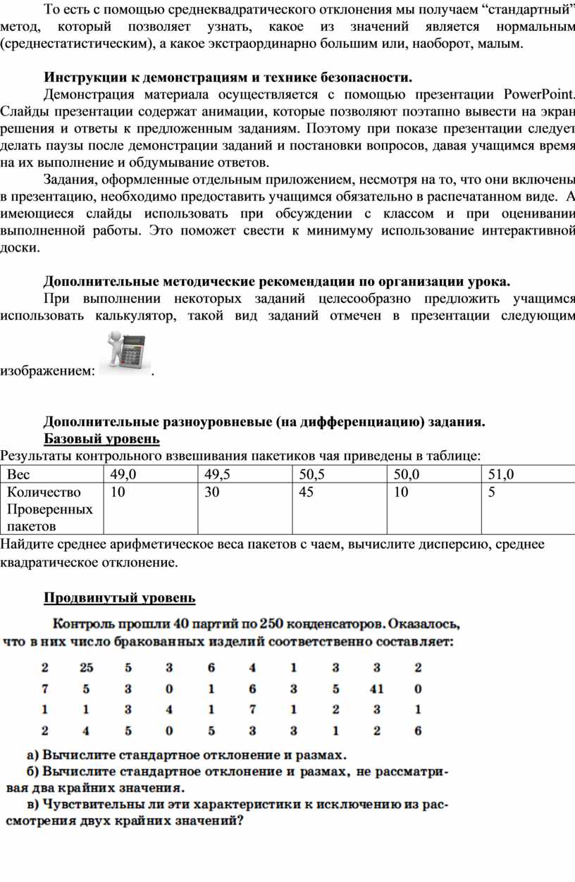 Найдите среднее арифметическое веса пакетов с чаем, вычислите дисперсию, среднее квадратическое отклонение.