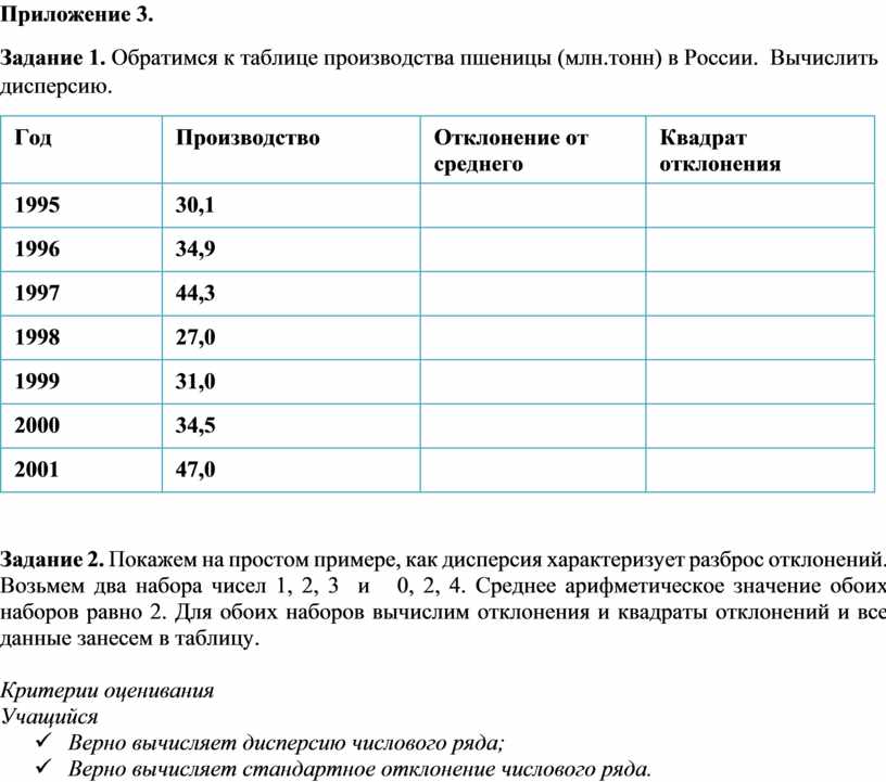 Задание 1. Обратимся к таблице производства пшеницы (млн.тонн) в России. Вычислить дисперсию.