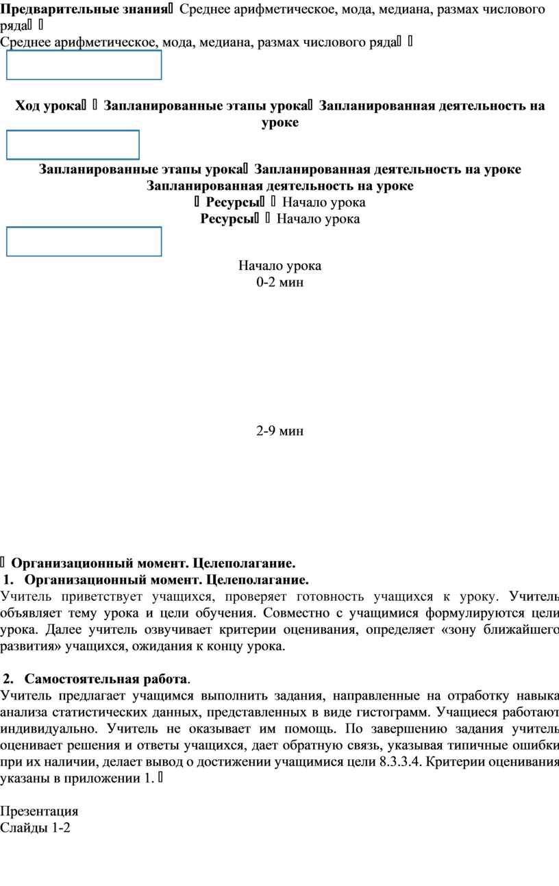 1. Организационный момент. Целеполагание. Учитель приветствует учащихся, проверяет готовность учащихся к уроку. Учитель объявляет тему урока и цели обучения. Совместно с учащимися формулируются цели урока. Далее учитель озвучивает критерии оценивания, определяет «зону ближайшего развития» учащихся, ожидания к концу урока.