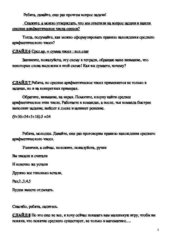 А сейчас, ребята, я хочу показать вам, что с понятием среденего