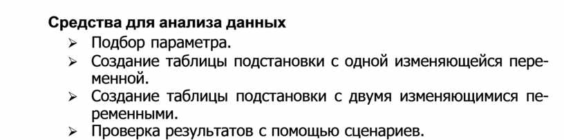 Ø Создание таблицы подстановки с одной изменяющейся пере- менной.
