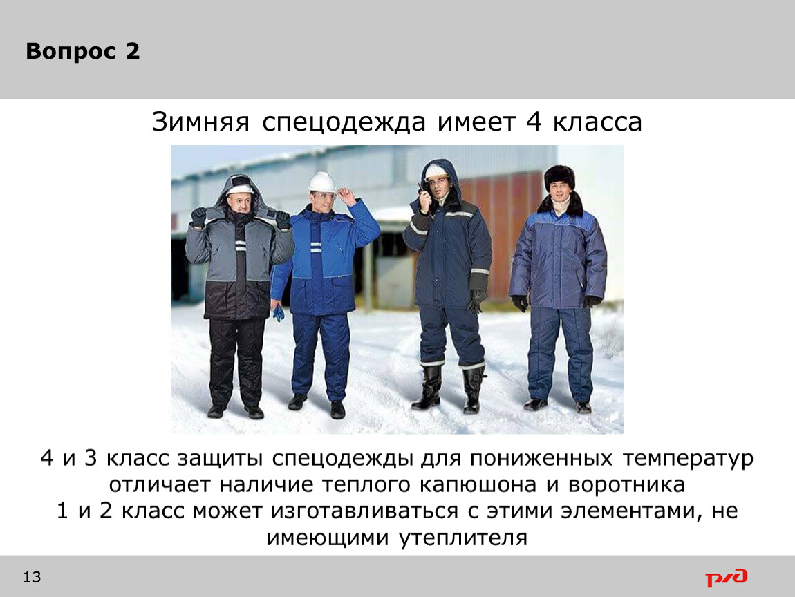 Зимняя спецодежда имеет 4 класса