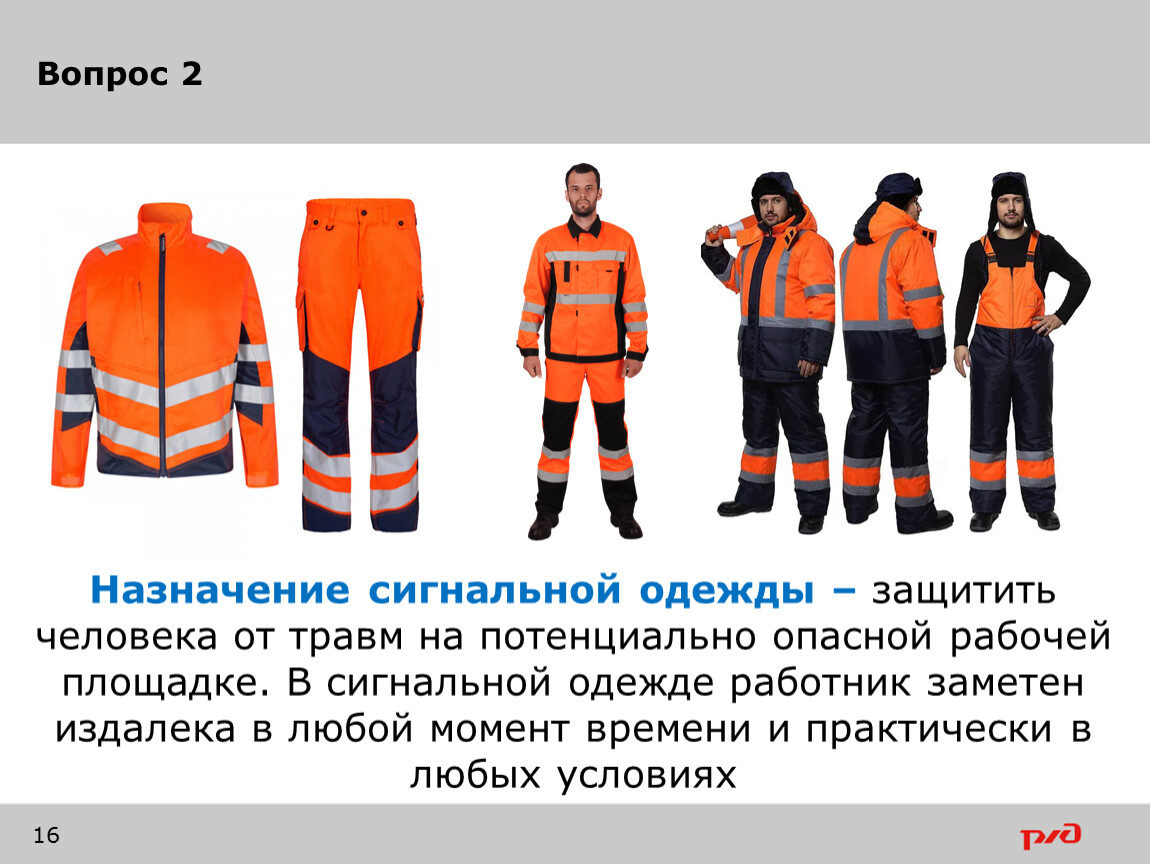 Назначение сигнальной одежды – защитить человека от травм на потенциально опасной рабочей площадке. В сигнальной одежде работник заметен издалека в любой момент времени и практически в любых условиях