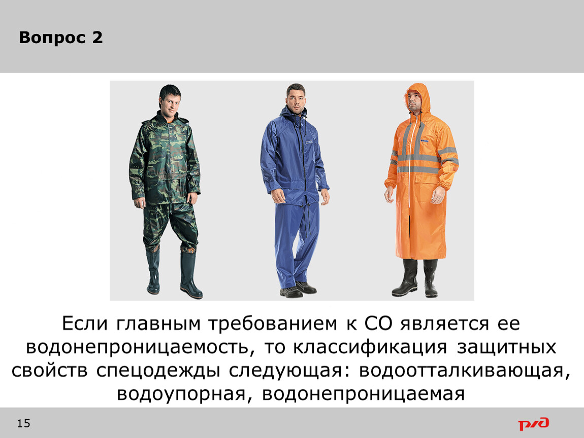 Если главным требованием к СО является ее водонепроницаемость, то классификация защитных свойств спецодежды следующая: водоотталкивающая, водоупорная, водонепроницаемая