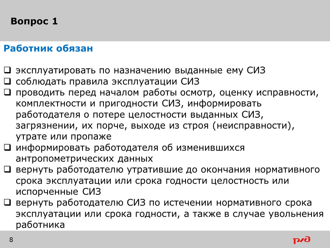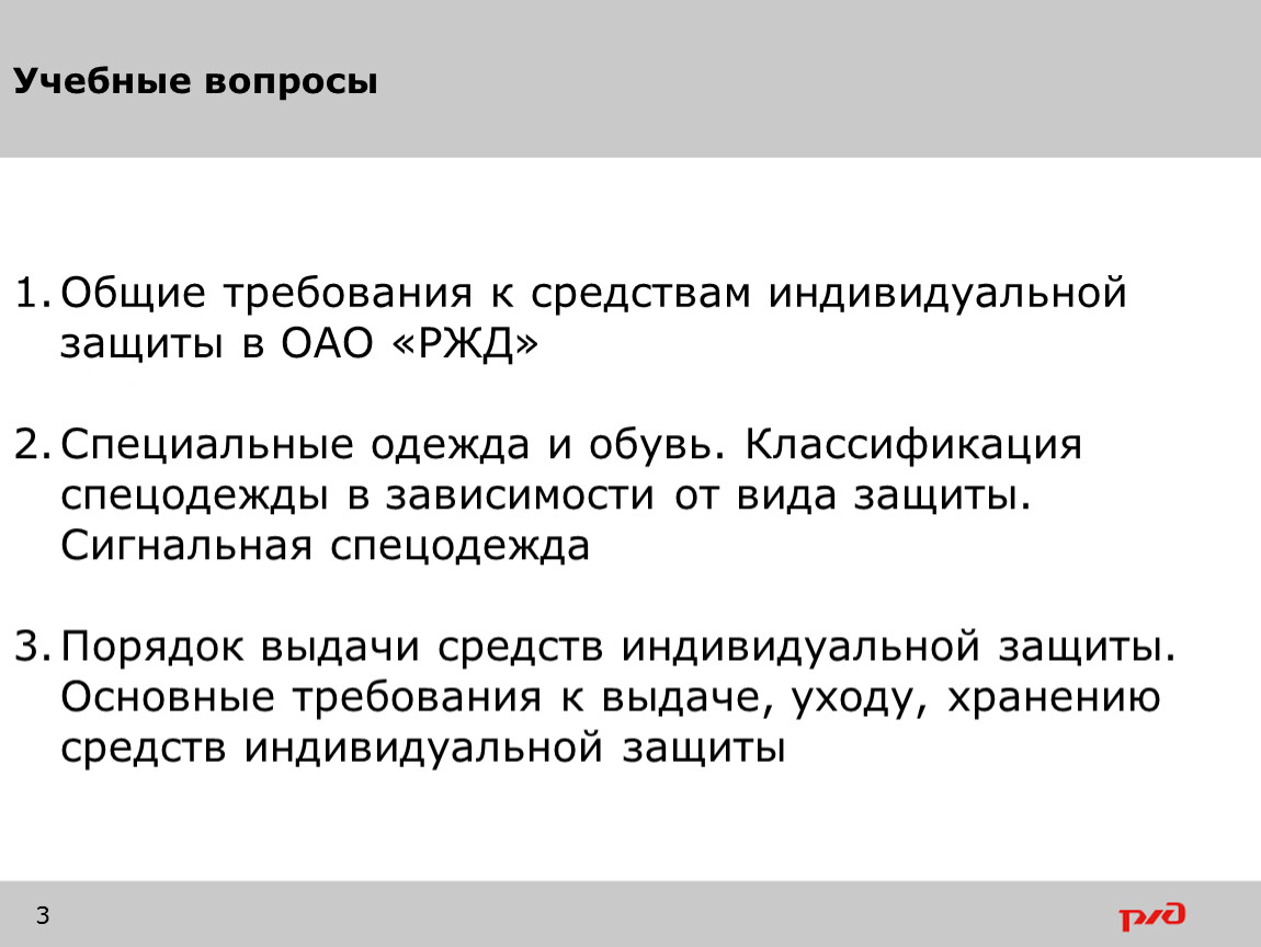 Общие требования к средствам индивидуальной защиты в ОАО «РЖД»