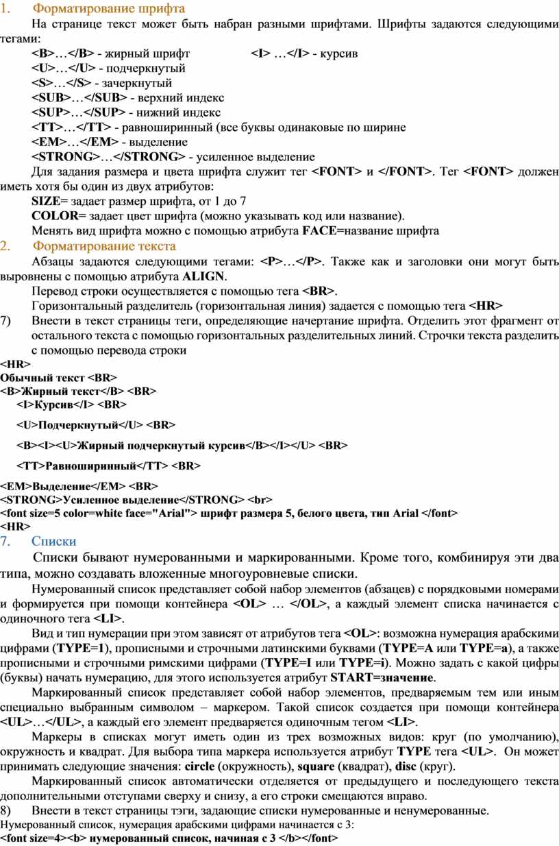 8) Внести в текст страницы тэги, задающие списки нумерованные и ненумерованные.