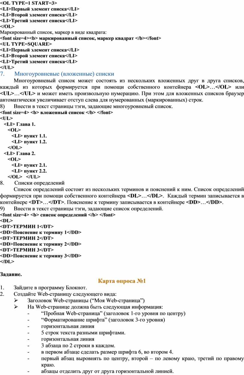 9) Внести в текст страницы тэги, задающие многоуровневый список.