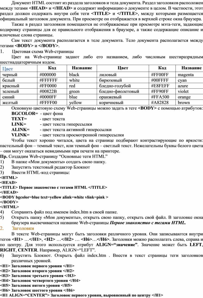 Пр. Создадим Web-страницу “Основные теги HTML”