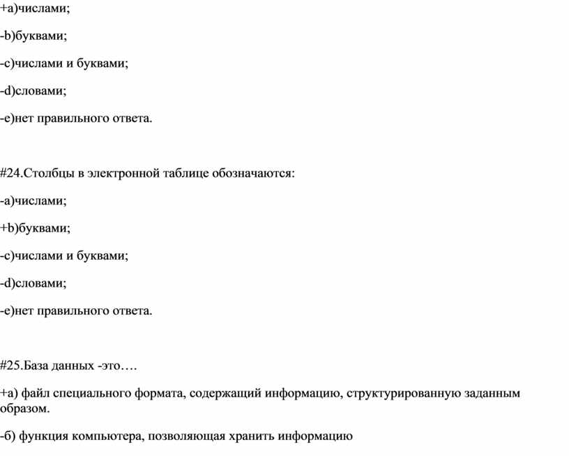 #23.Строки в электронной таблице обозначаются: