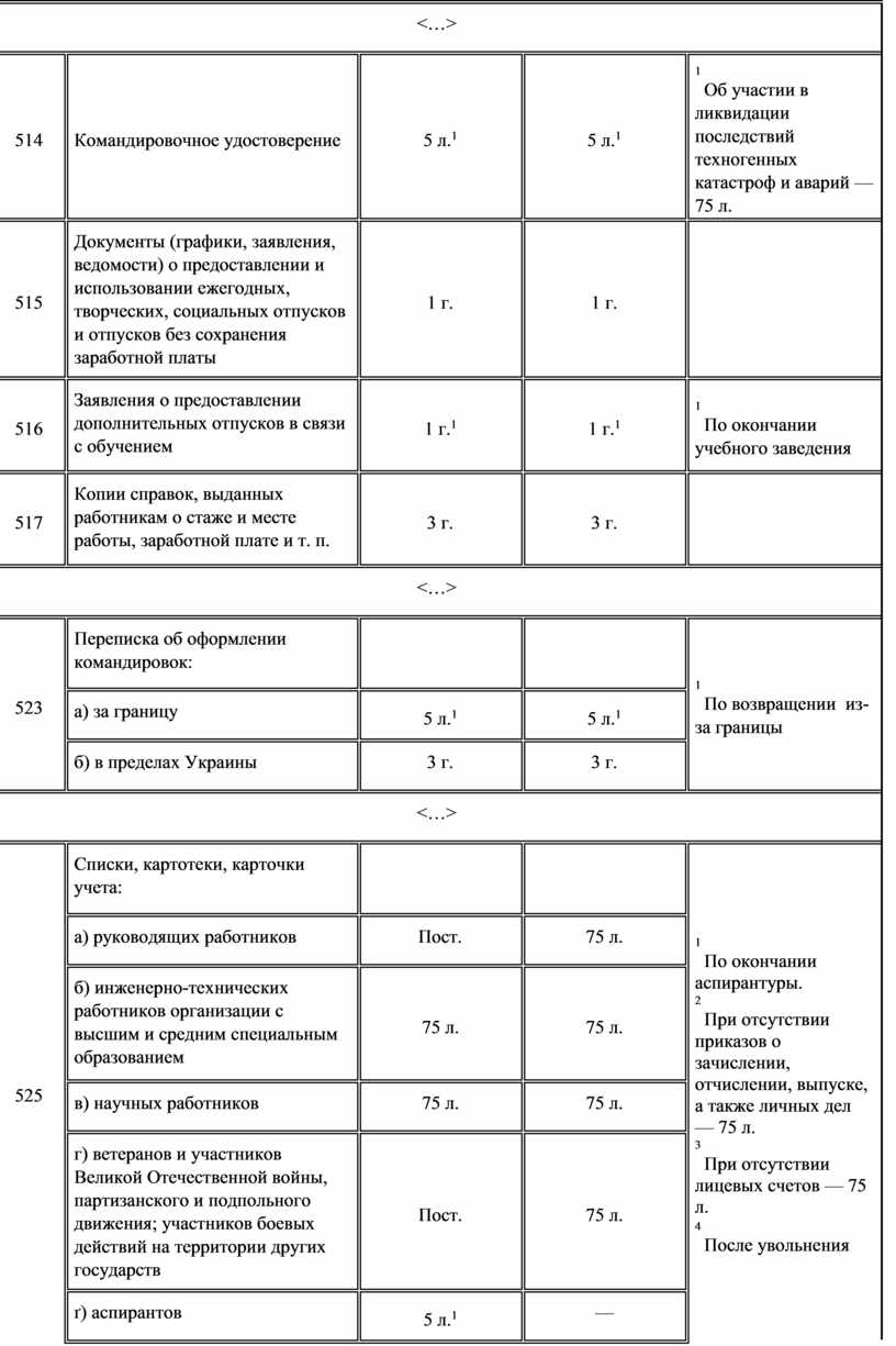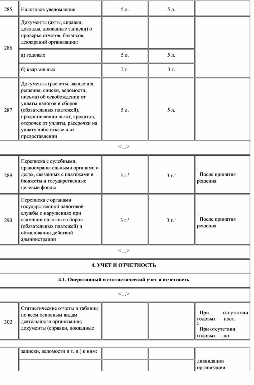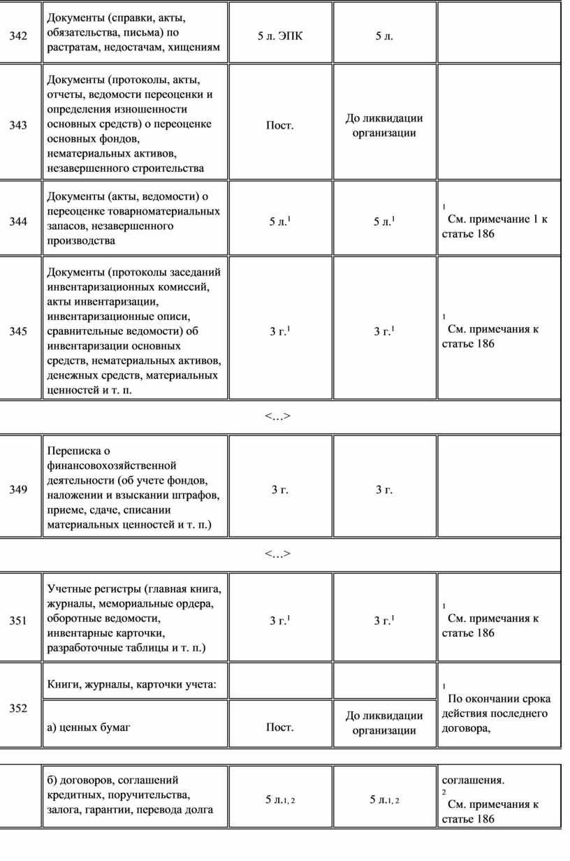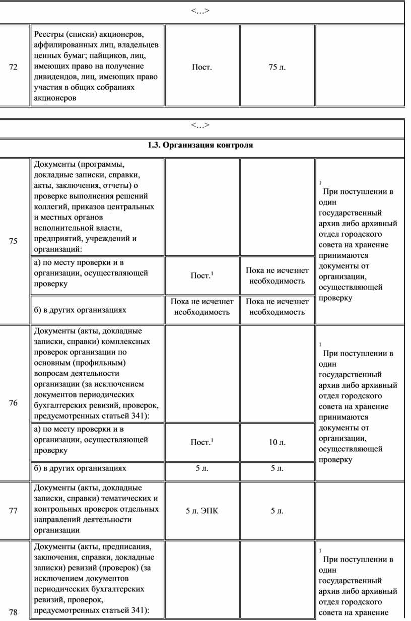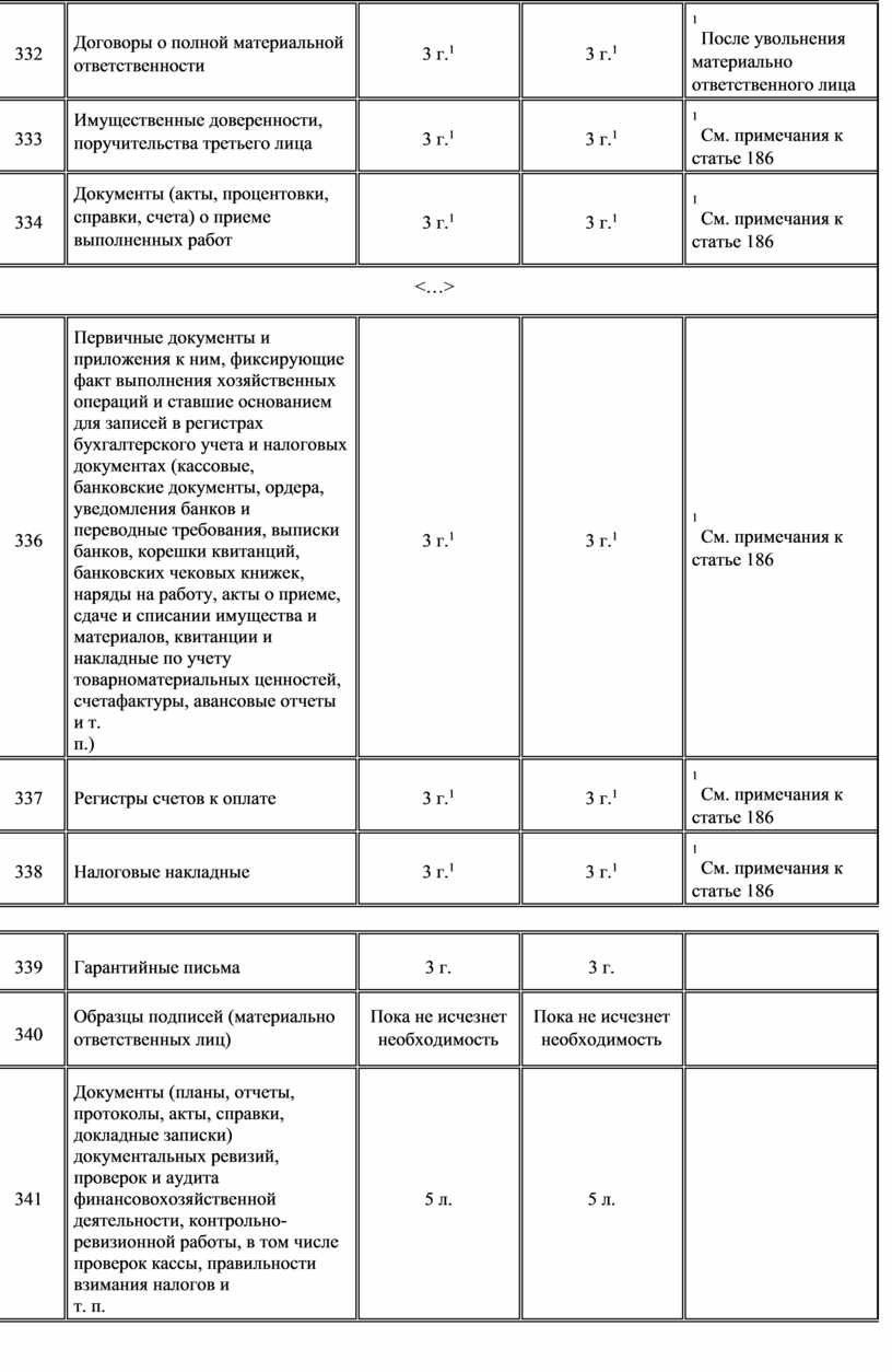 В примечаниях указаны признаки выделения определенных видов документов или конкретных документов, сроки хранения которых отличаются от указанных в графах 3, 4 настоящего Перечня. Так, примечание к статьям «При условии завершения проверки государственными налоговыми органами по вопросам соблюдения налогового законодательства, а для органов исполнительной власти, государственных фондов, бюджетных организаций, субъектов хозяйствования государственного сектора экономики, предприятий и организаций, которые получали средства из бюджетов всех уровней и государственных фондов либо использовали государственное или коммунальное имущество, — ревизии, проведенной органами государственной контрольно-ревизионной службы по совокупным показателям финансово-хозяйственной деятельности. В случае возникновения споров (противоречий), возбуждения уголовных дел, открытия судами производства по делам — хранятся до принятия окончательного решения» конкретизирует сроки хранения бухгалтерской документации.