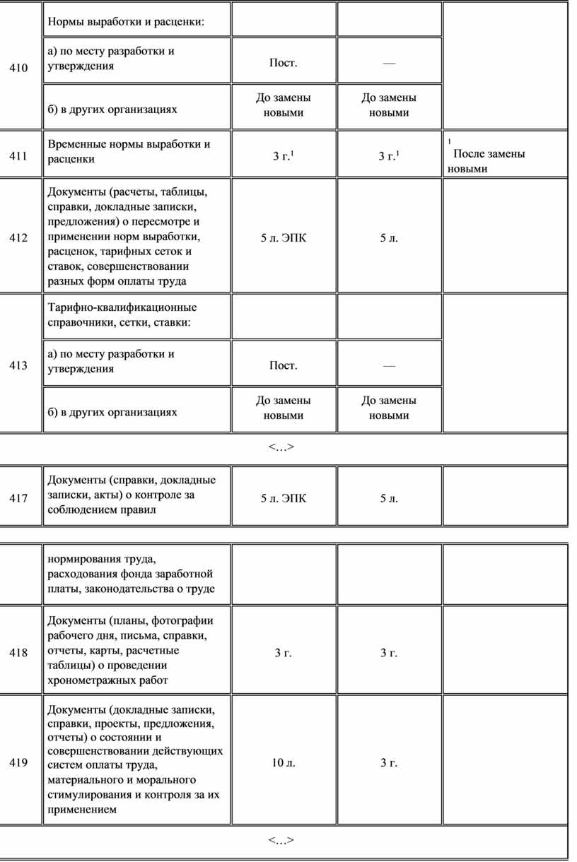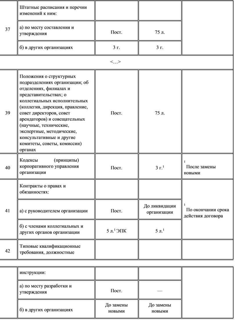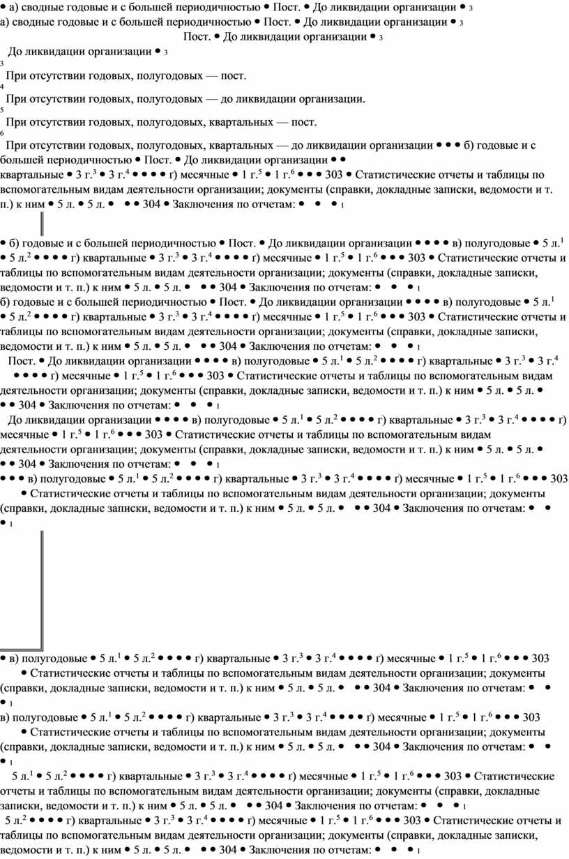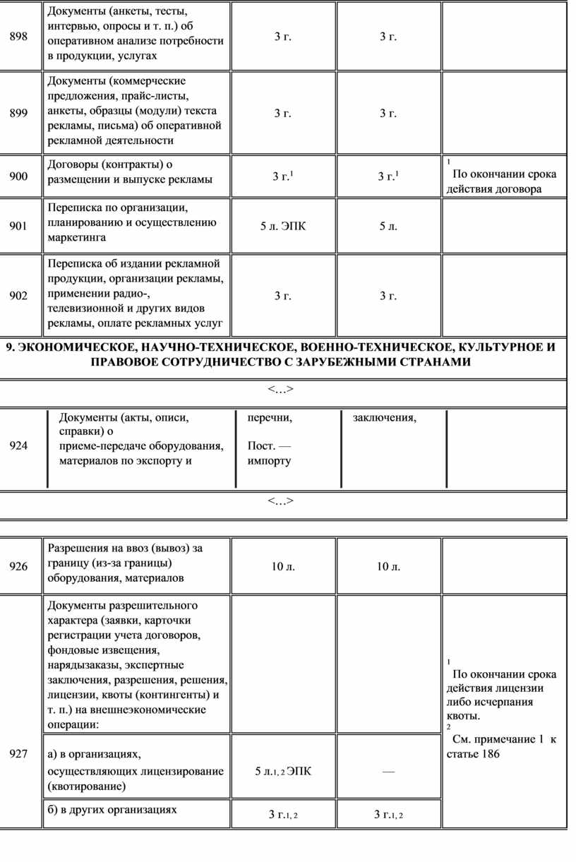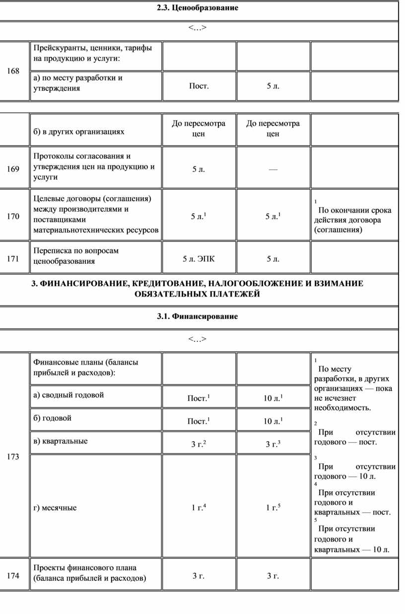 Примечания «По окончании срока действия договора», «После утверждения», «После замены новыми», «После снятия изделий с производства», «После ввода объекта в эксплуатацию» и т. п. указывают, что отсчет срока, указанного в графах 3 и 4 Перечня, осуществляется с указанного момента.