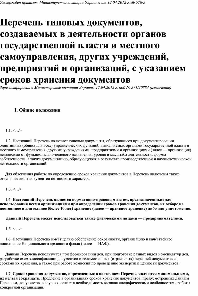 Утвержден приказом Министерства юстиции Украины от 12.04.2012 г. № 578/5