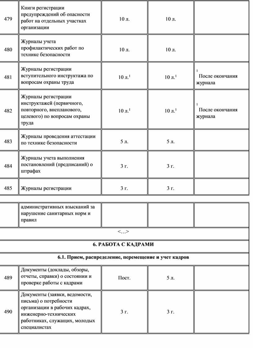 Перечень типовых документов, создаваемых в деятельности органов государственной власти и местного самоуправления, других учреждений, предприятий и организаций, с указанием сроков хранения документов