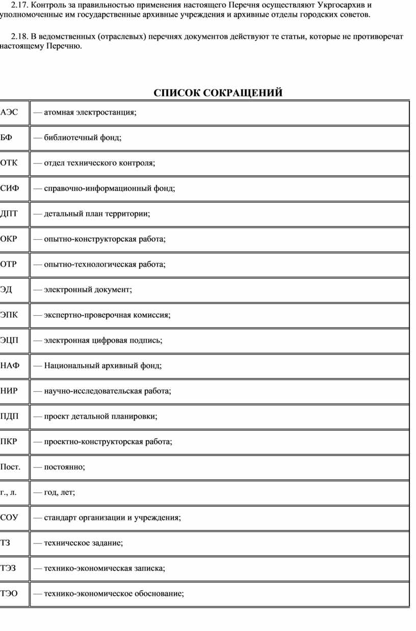 2.17. Контроль за правильностью применения настоящего Перечня осуществляют Укргосархив и уполномоченные им государственные архивные учреждения и архивные отделы городских советов.