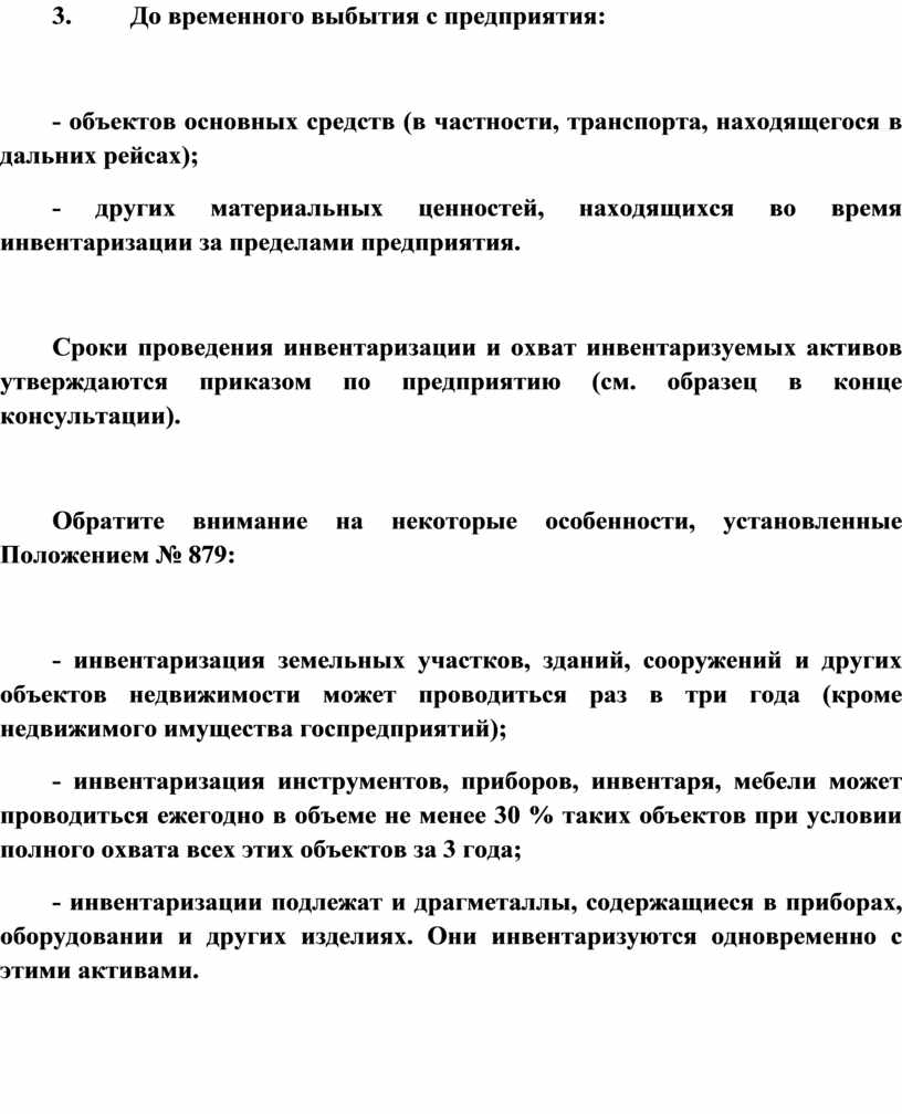 Согласно п. 10 Положения № 879 инвентаризация проводится:
