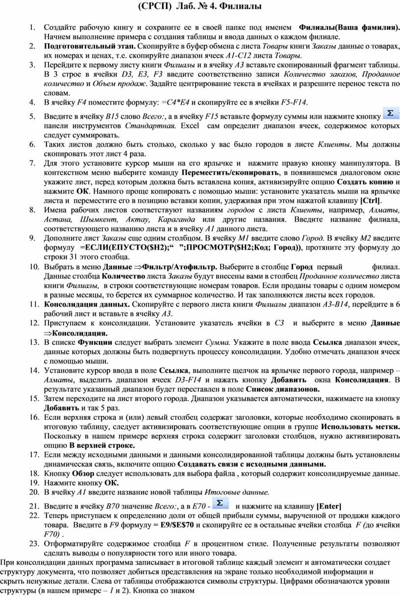 11. Консолидация данных. Скопируйте с первого листа книги Филиалы диапазон А3-В14, перейдите в 6 рабочий лист и вставьте в ячейку А3.
