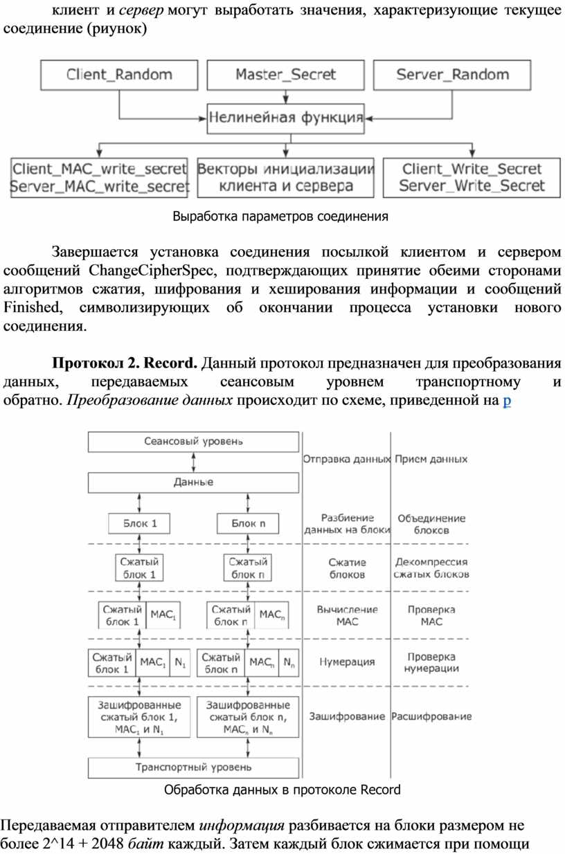 Протокол 2. Record. Данный протокол предназначен для преобразования данных, передаваемых сеансовым уровнем транспортному и обратно. Преобразование данных происходит по схеме, приведенной на р
