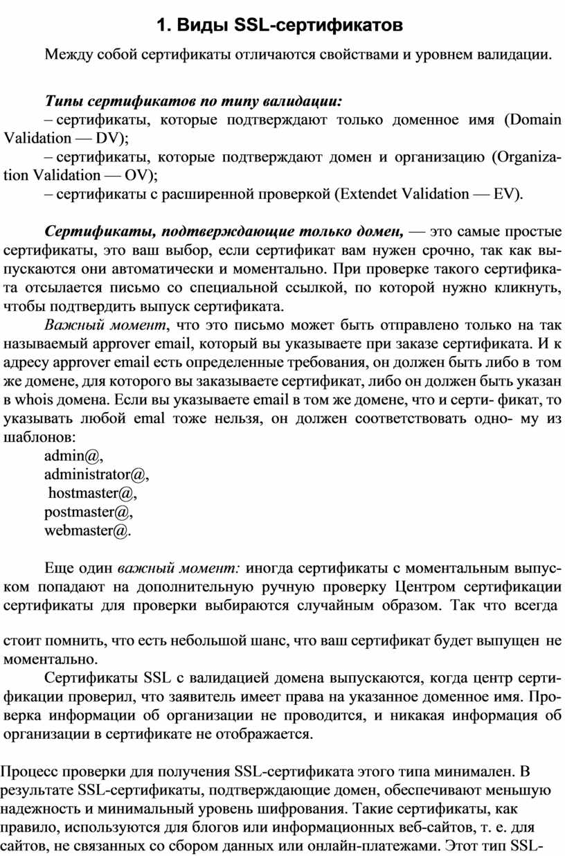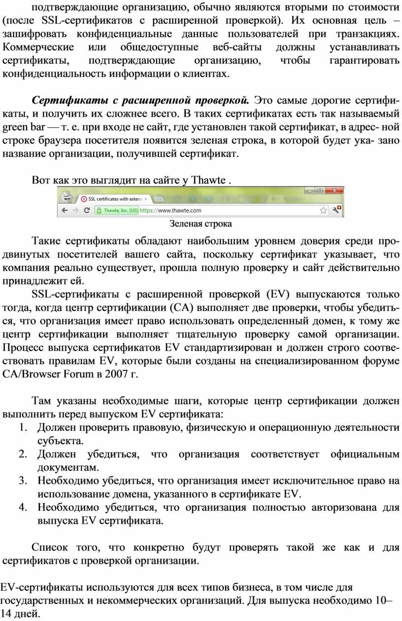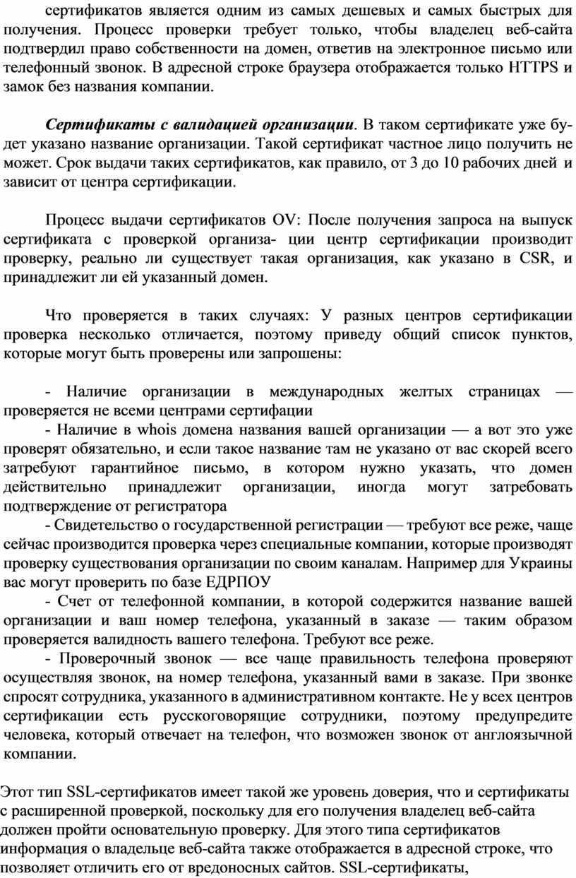 SSL-сертификаты — самый распространенный на данный момент тип сертификатов в Интернете. Чаще всего они используются в интернетмагази- нах, т. е. на сайтах, где есть функция заказа и где клиент вводит свои персональные данные. Для того чтобы эти данные в момент передачи из браузера на сервер невозможно было перехватить, используется специальный протокол HTTPS, который шифрует все передаваемые данные.