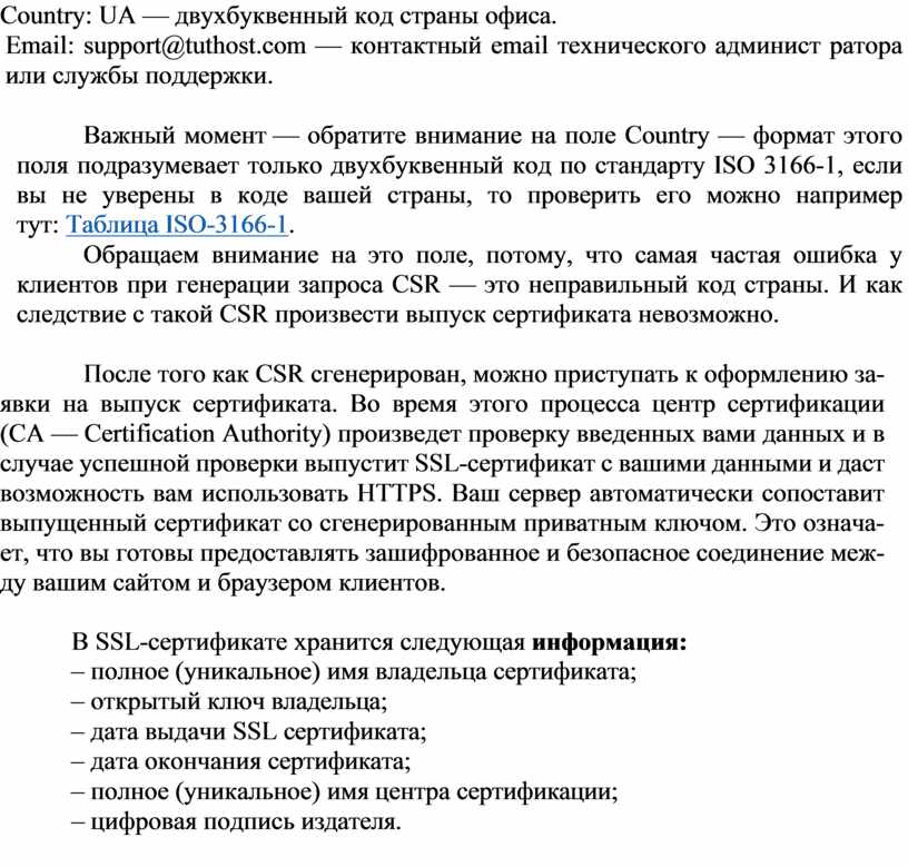 · Соединение SSL характеризуется следующими значениями.