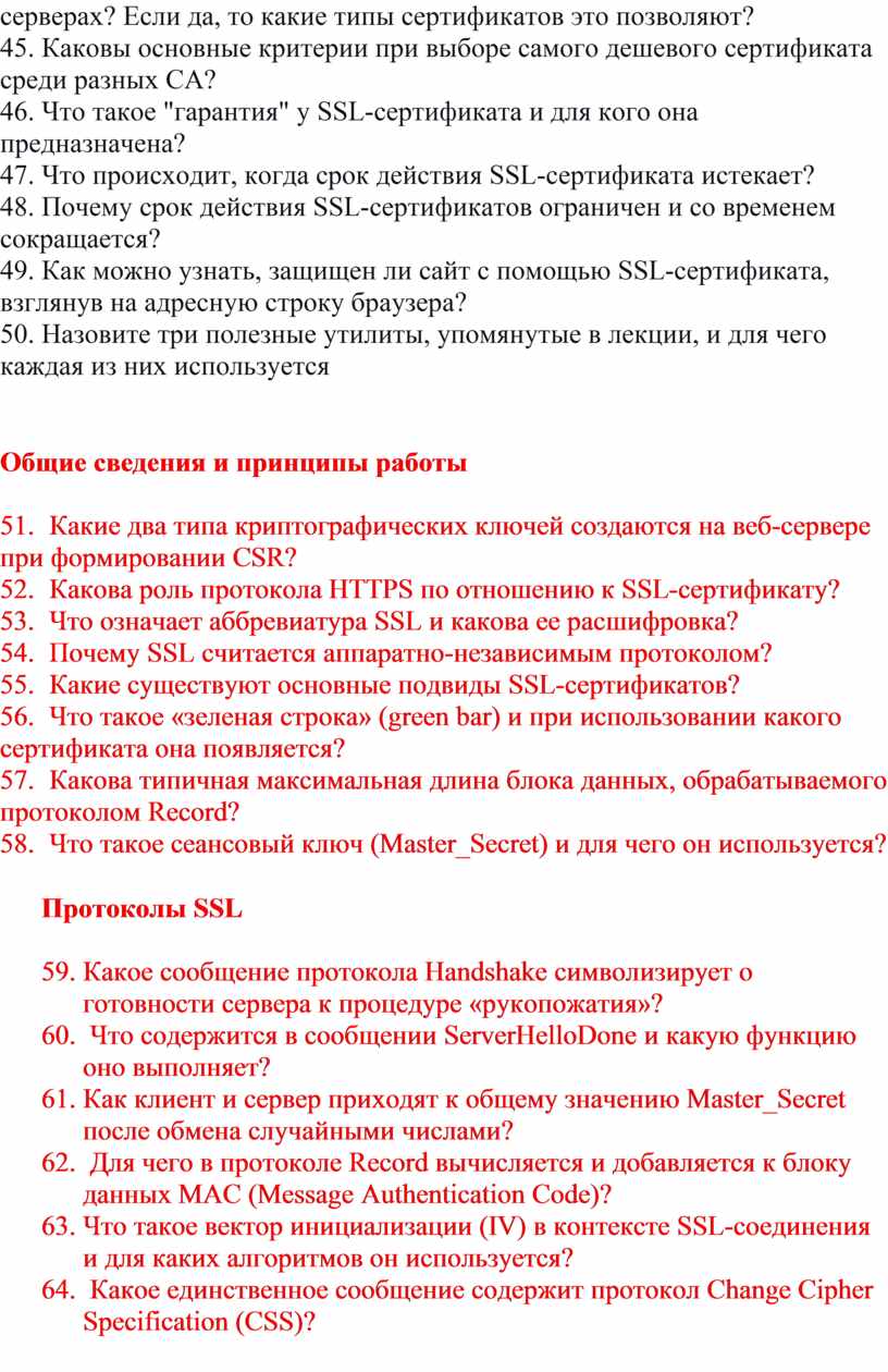 · Секретный ключ сеанса (Master_Secret) - разделяемый клиентом и сервером секретный ключ.