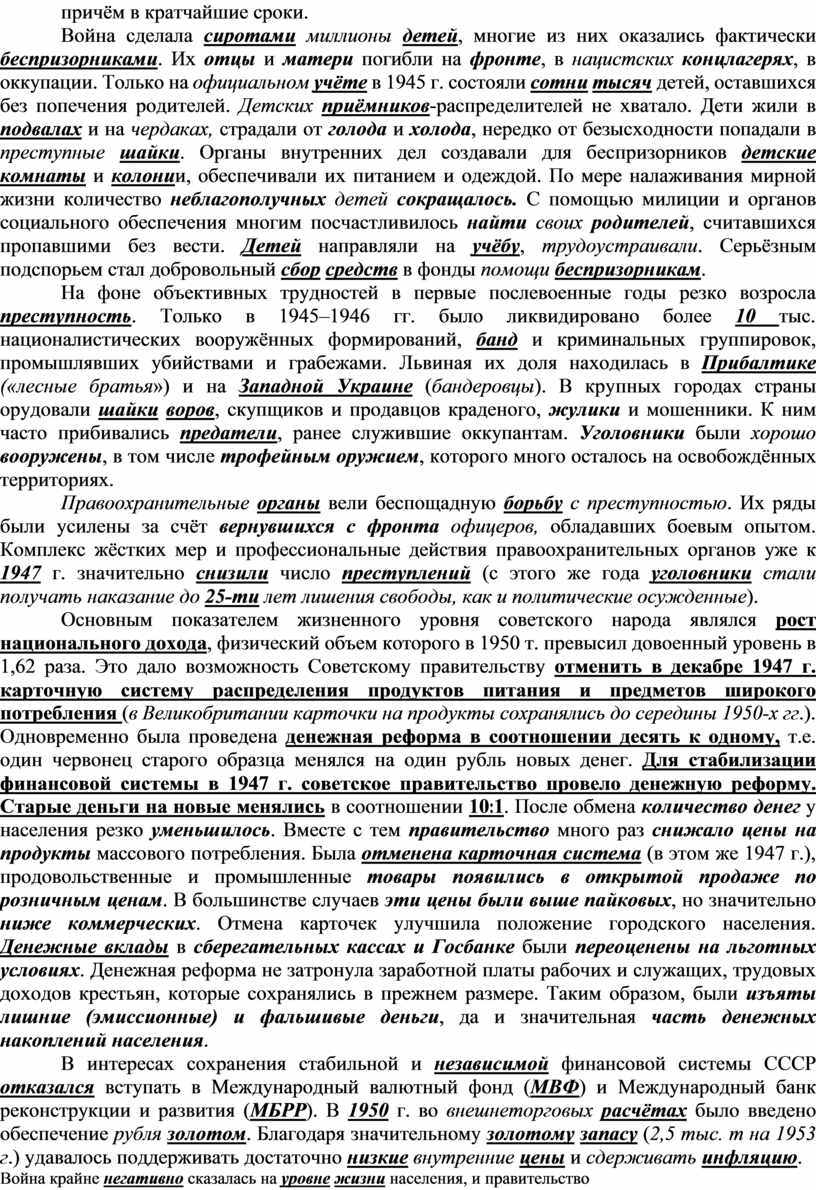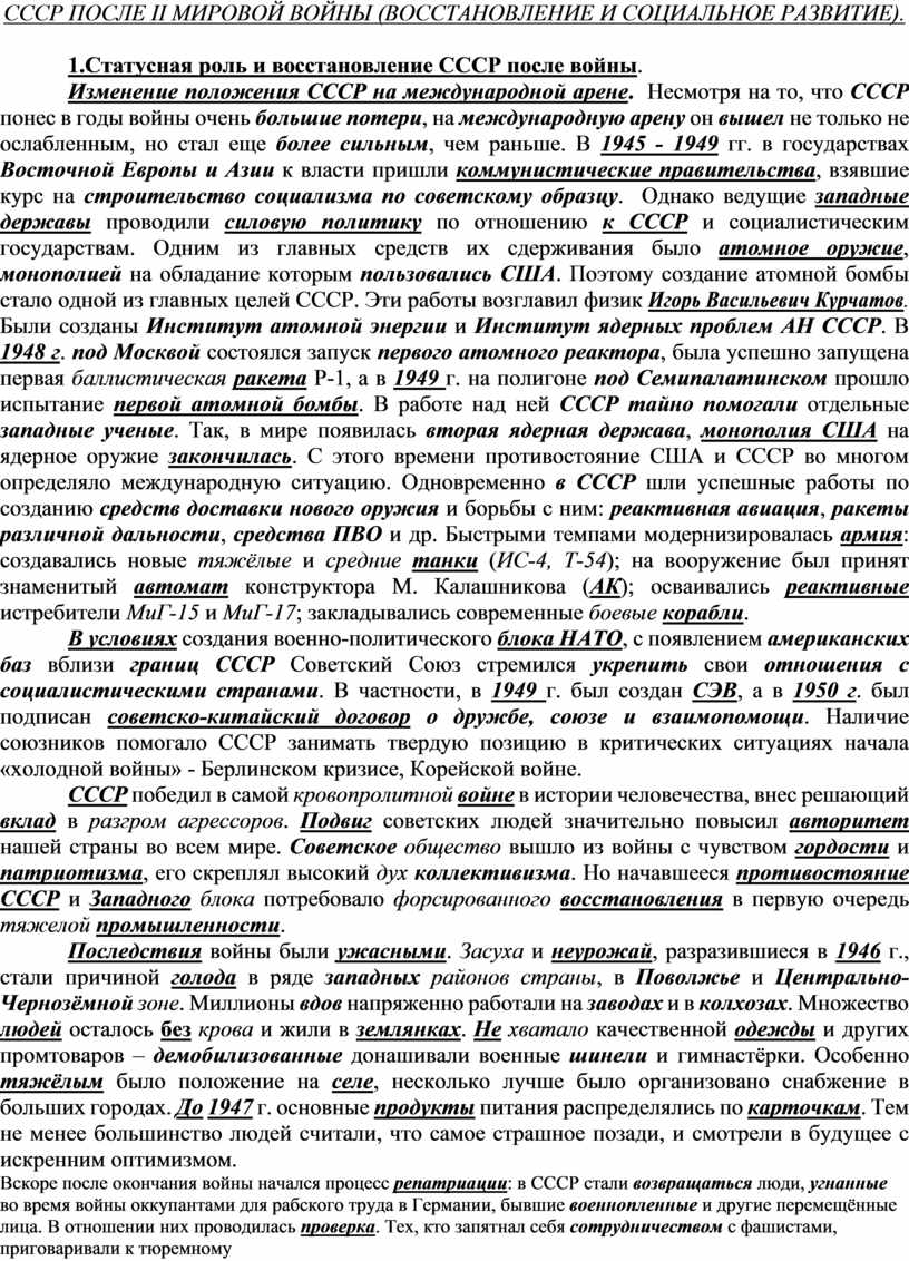 СССР ПОСЛЕ II МИРОВОЙ ВОЙНЫ (ВОССТАНОВЛЕНИЕ И СОЦИАЛЬНОЕ РАЗВИТИЕ).