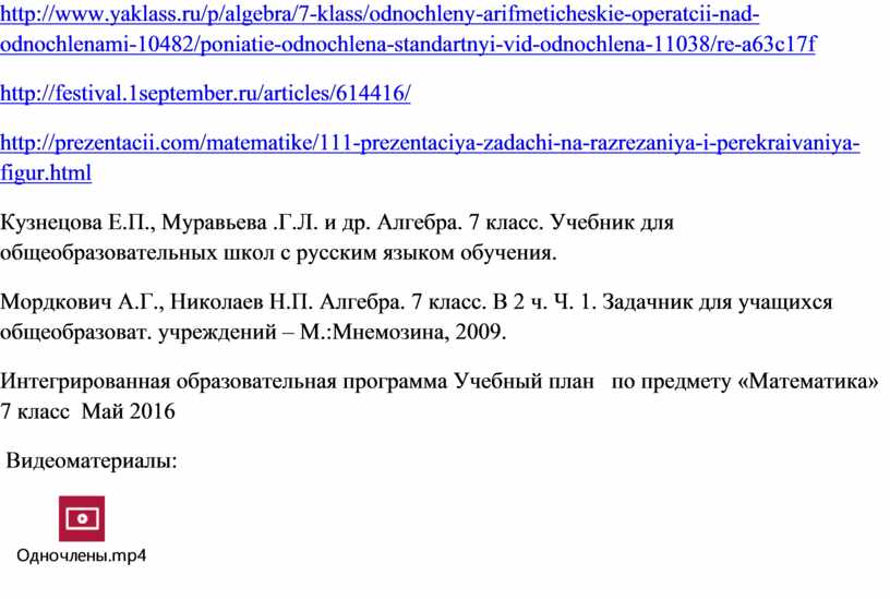 http://www.yaklass.ru/p/algebra/7-klass/odnochleny-arifmeticheskie-operatcii-nad-odnochlenami-10482/poniatie-odnochlena-standartnyi-vid-odnochlena-11038/re-a63c17f