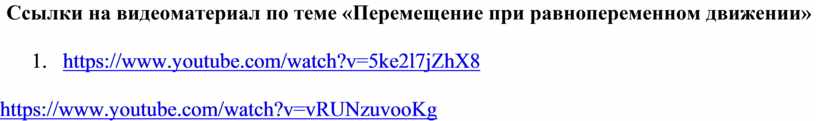Ссылки на видеоматериал по теме «Перемещение при равнопеременном движении»