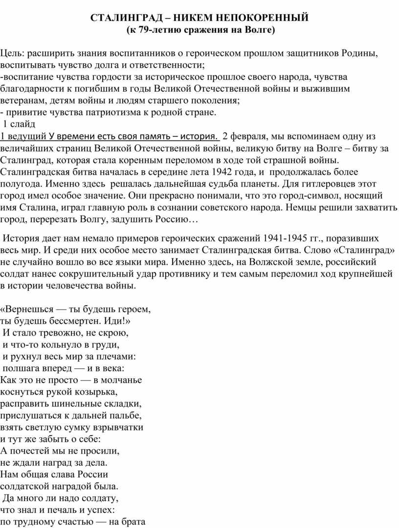 СТАЛИНГРАД – НИКЕМ НЕПОКОРЕННЫЙ