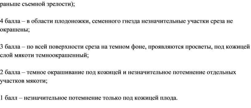 4 балла – в области плодоножки, семенного гнезда незначительные участки среза