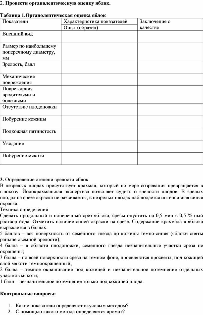 2. Провести органолептическую оценку яблок.