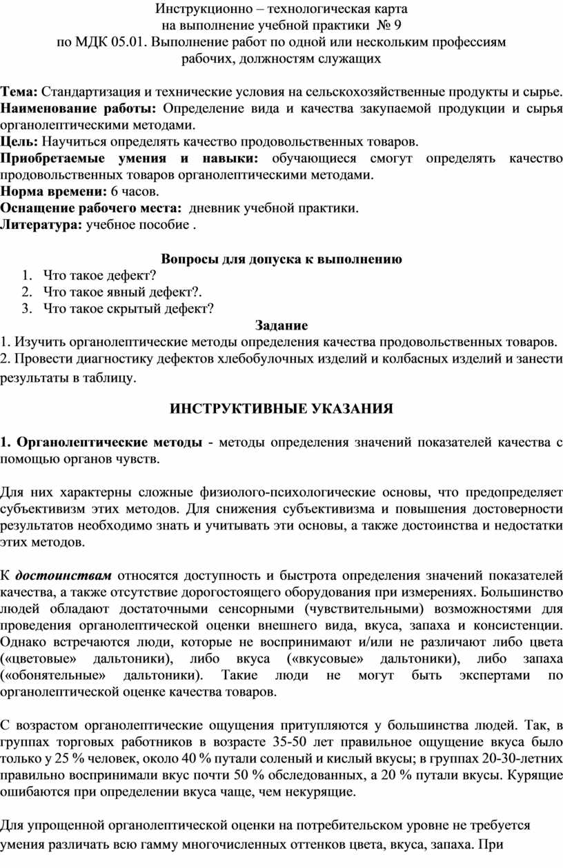 1. Изучить органолептические методы определения качества продовольственных товаров.