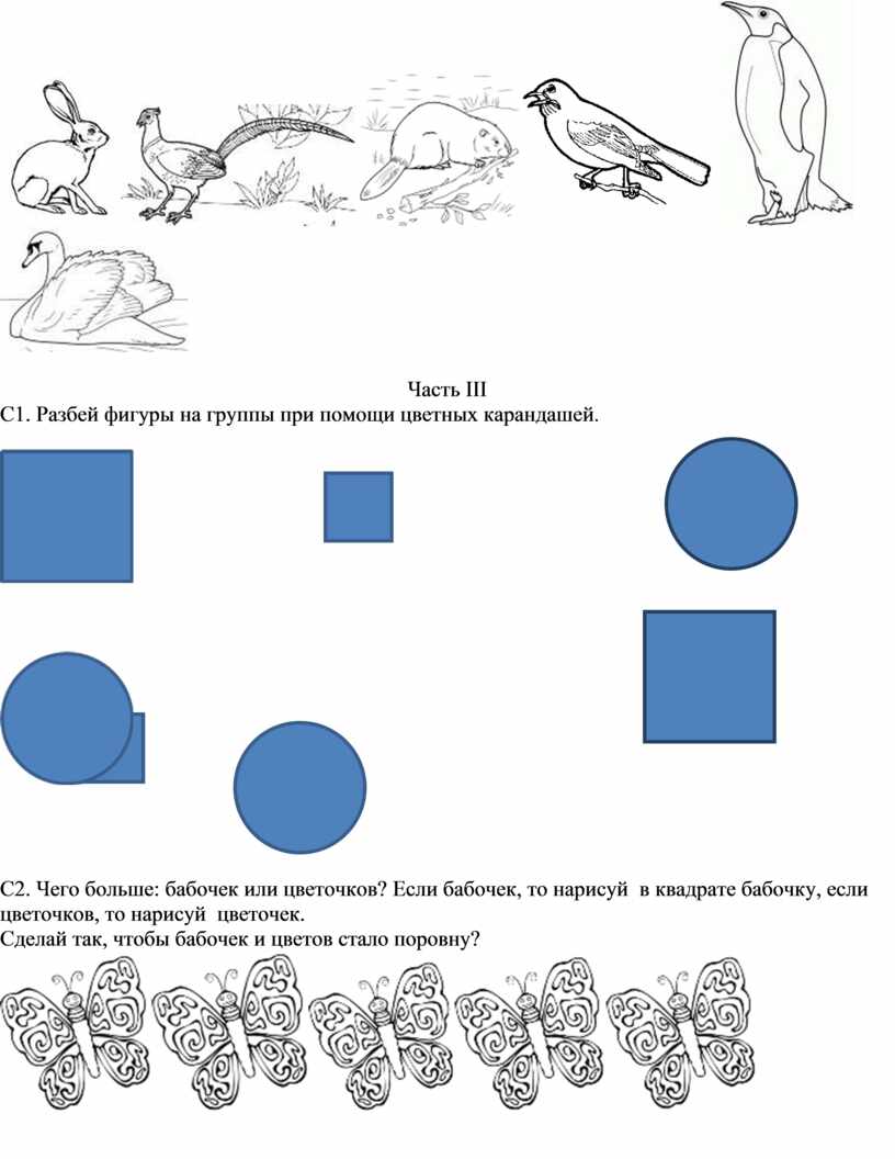 С2. Чего больше: бабочек или цветочков? Если бабочек, то нарисуй в квадрате бабочку, если цветочков, то нарисуй цветочек.