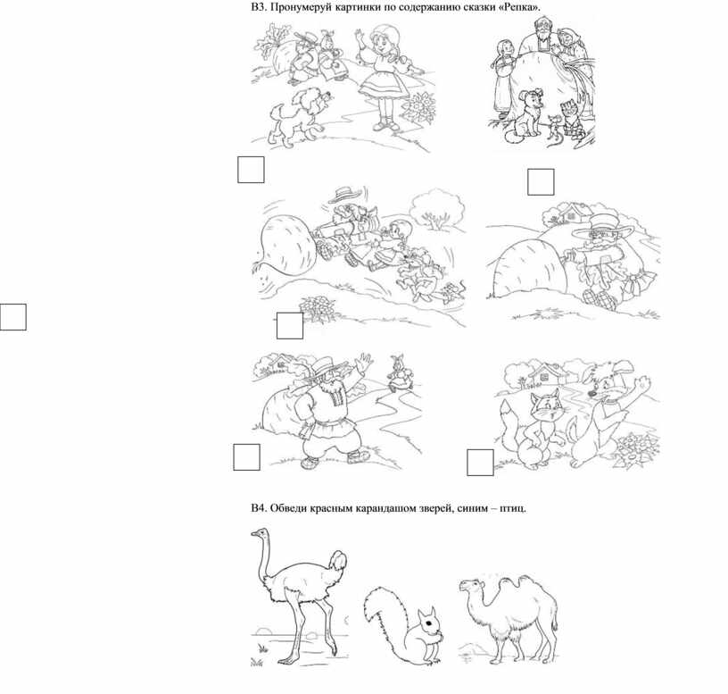 В3. Пронумеруй картинки по содержанию сказки «Репка».